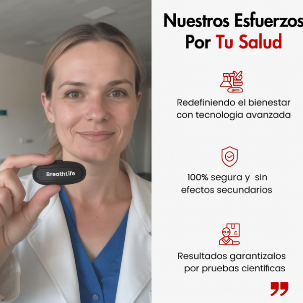 Entendemos la importancia de su salud, y por eso BreathLife se elabora con precisión y cuenta con la aprobación de investigaciones científicas. Nuestro objetivo es ofrecerle una solución natural, eficaz y fácil de usar que se integre a la perfección en su rutina diaria.