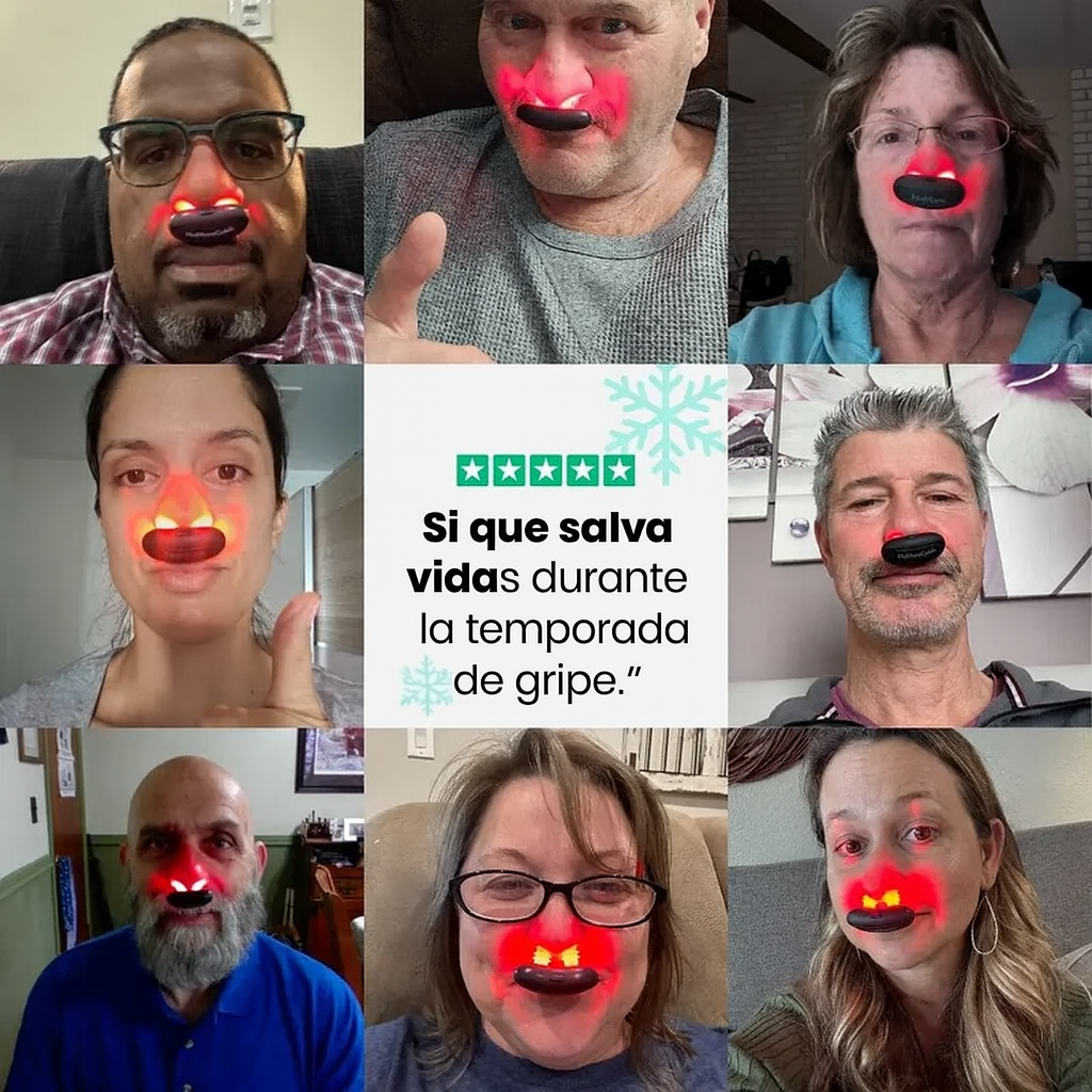Gracias a la terapia de luz roja de baja intensidad, ayuda a reducir la inflamación, mejora la circulación en las vías nasales y libera tu respiración de forma natural, sin químicos ni sprays.